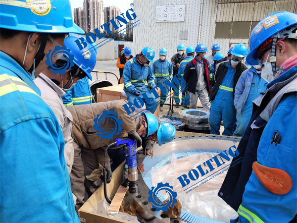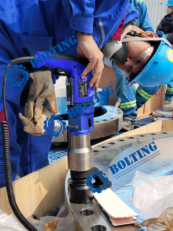 在技術人員的專業培訓和解答之下,現場使用人員逐一了解數顯電動定扭矩扳手的了解和使使用,相比之前使用的液壓扭矩扳手使用更加輕便,單人即可操作,無需更多人員陪同作業,減少了大量的時間和人力。