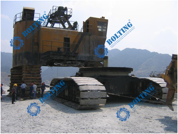 電鏟是千萬噸級露天礦山主要采掘設備之一,生產率高,作業率高,操作成本低,是目前采礦業公認的機型。電鏟由行走裝置、回轉裝置、工作裝置、潤滑系統、供氣系統組成。鏟斗是電鏟的主要部件,它直接承受被挖掘礦石的作用力,因而磨損較大,斗桿也是電鏟挖掘過程中的主要部件之一,它的作用是連接和支持鏟斗,并將推壓作用傳送給鏟斗,鏟斗在推壓和提升力的共同作用下完成挖掘土壤的動作;其行走機構中最為核心的履帶裝置,經過相關的傳動機構最終使其在地面直接移動!