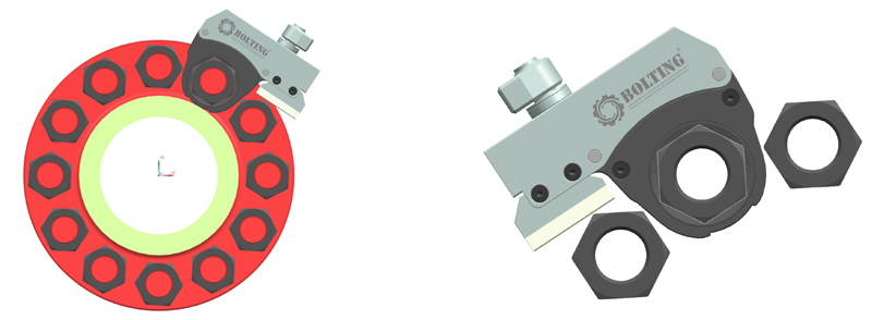 石油防噴器采油樹專用缺口式超薄中空液壓扭矩/扭力/力矩扳手,緊固或拆卸過程中,無需反復取下,一次安裝即可
