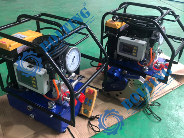 近期,波霆公司技術(shù)人員為客戶定制的無線遙控器數(shù)顯智能液壓扭力扳手泵成功問世,該液壓泵無需外接遙控器,無需為過長(zhǎng)的遙控器電線而煩惱。