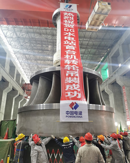 2021年1月19日,由水電七局承擔安裝任務的西藏在建最大內需電源項目——DG水電站首臺(1號機)轉輪、水輪機大軸順利吊裝就位。