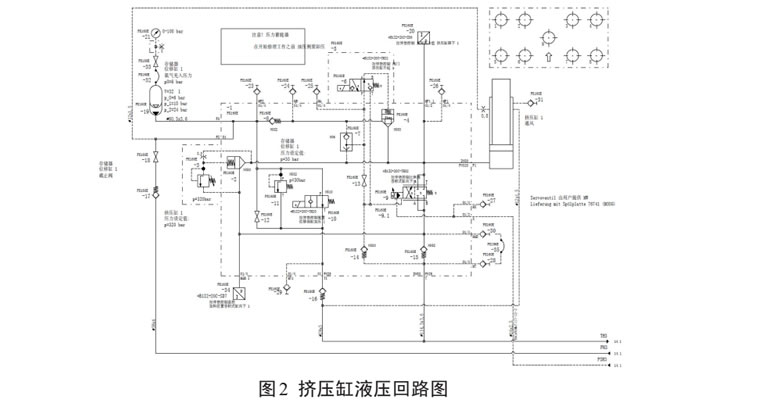 拉伸墊的擠壓力是依靠滑塊壓上拉伸墊而被動(dòng)產(chǎn)生的壓力,壓力大小的控制由伺服閥來實(shí)現(xiàn)。常見的壓力下超故障有缸體活塞密封泄漏、安全閥損壞、伺服閥損壞、預(yù)充油液不足等形式。首先擠壓缸上行是依靠 20bar 的預(yù)充壓力推動(dòng)活塞桿跟隨頂冠上行至上死點(diǎn),由于在該過程中每個(gè)缸的壓力和位置都沒有監(jiān)控,即使出現(xiàn)預(yù)充壓力不足、活塞沒有上行至上死點(diǎn)都不會(huì)故障報(bào)警,如圖2所示。在沖壓力下超故障出現(xiàn)以后,可以在操控面板的幫助界面查看擠壓缸預(yù)充壓力是否正常,排除預(yù)充壓力是否合適以后,再排查伺服閥以及伺服閥控制模塊。在長時(shí)間停機(jī)或者拉伸墊大修以后出現(xiàn)擠壓力下超故障,應(yīng)優(yōu)先檢查插裝式安全閥。由于插裝式安全閥控制油和系統(tǒng)油都是來自擠壓缸的油,而正常情況下安全閥芯都不動(dòng)作,閥芯活動(dòng)間隙被油泥填充,在檢修或者啟動(dòng)期間,如果安全閥芯被意外開啟,復(fù)位彈簧將不能使閥芯復(fù)位。閥芯沒有復(fù)位,擠壓缸下腔的就不能建立起需要的壓力,導(dǎo)致故障產(chǎn)生。