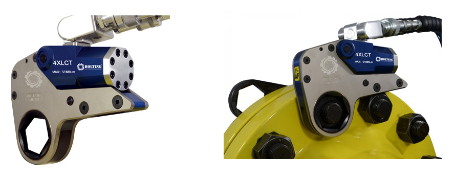 在螺栓周圍空間狹小的設備工況精準扭矩安裝預緊一般采用中空液壓扳手預緊方案。很多人以為中空液壓扳手與驅動液壓扳手一樣,只需要按照螺栓所需要的扭矩選擇相應的扭矩范圍的就可以。其實不然,這才只是中空液壓扳手選型的一步,也就是動力頭選型,還有工作頭的選型。那么,中空液壓扳手工作頭怎樣選配?